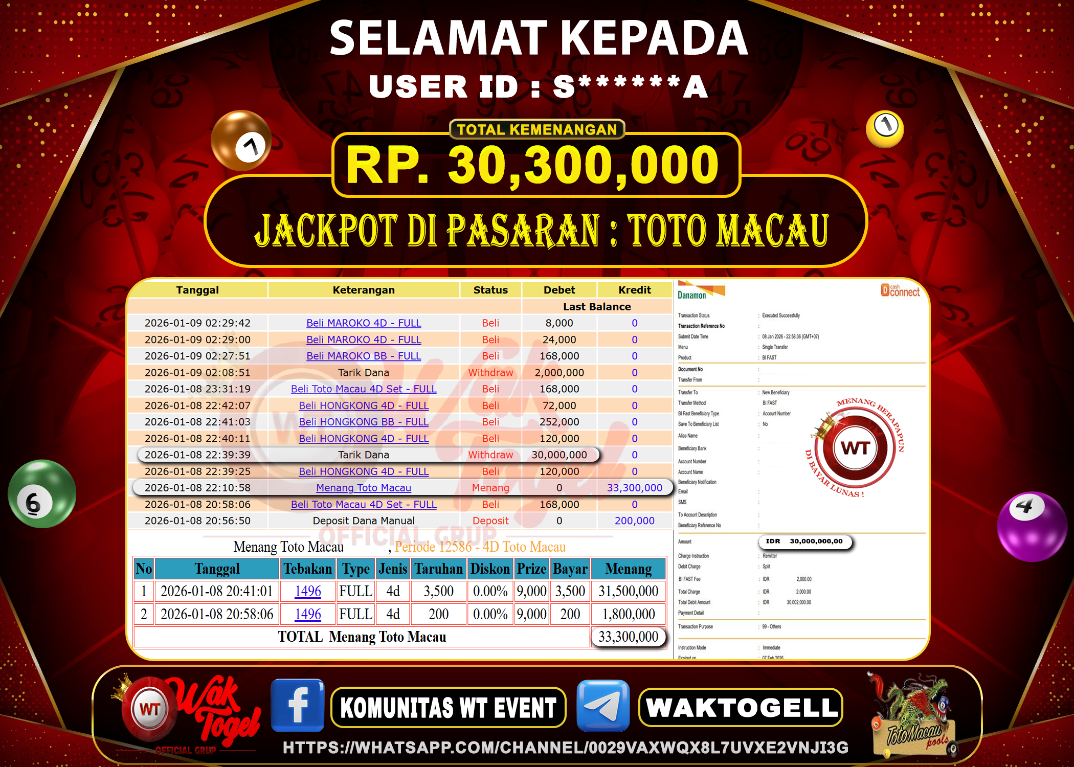 Bukti Pembayaran Jackpot Waktogel Untuk SLOT, TOGEL , LIVECASINO