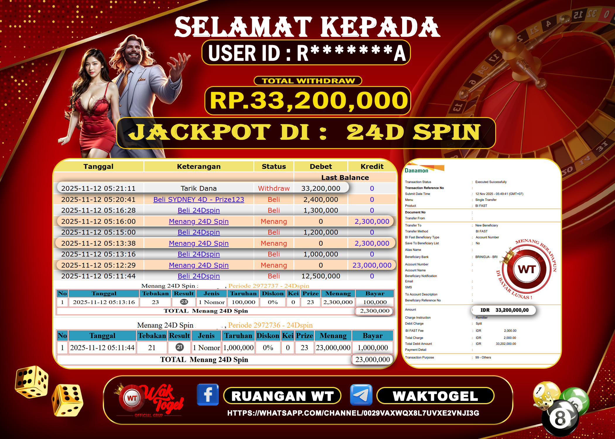 JACKPOT CASINO WAKTOGEL BUKTI PEMBAYARAN 24D SPIN WAKTOGEL By JPWT November 10, 2025 0 comments 2 min read BUKTI PEMBAYARAN MENANG 24D SPIN WAKTOGEL BUKTI PEMBAYARAN 24D GAMES WAKTOGEL RP.100.410.000 – GAME : CASINO 24D SPIN (USER ID : R*******A) TANGGAL |10-11-2025| CASH […]