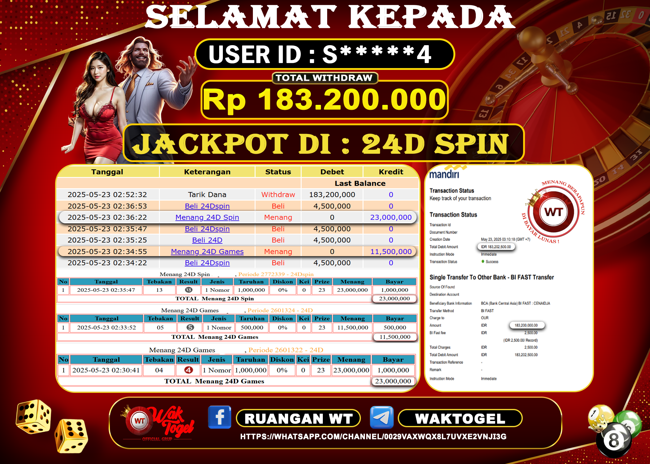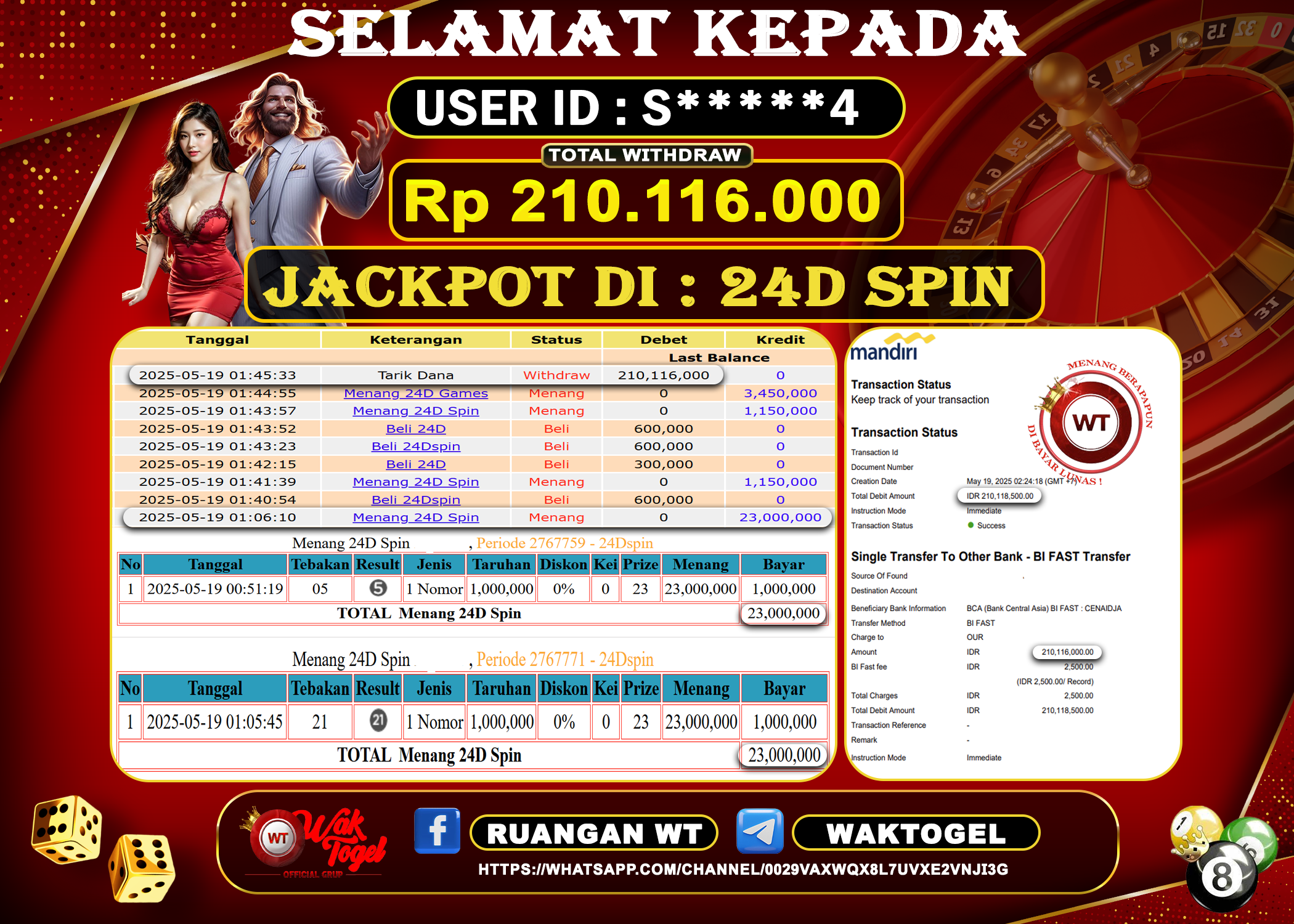 Bukti Pembayaran Jackpot Waktogel Untuk SLOT, TOGEL , LIVECASINO