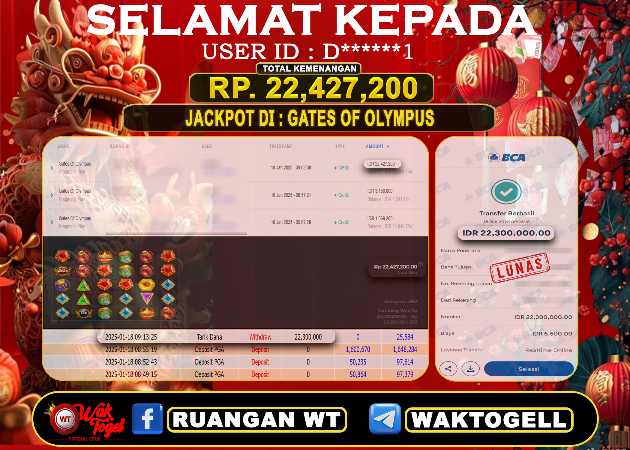 JACKPOT SLOT WAKTOGEL BUKTI PEMBAYARAN SLOT WAKTOGEL By JPWT Januari 16, 2025 0 comments 2 min read BUKTI PEMBAYARAN SLOT WAKTOGEL BUKTI PEMBAYARAN SLOT WAKTOGEL RP. 100.000.000 – GAME : SLOT GATES OF OLYMPUS (USER ID : K*******1) TANGGAL |15-01-2025| CASH LUNAS […]