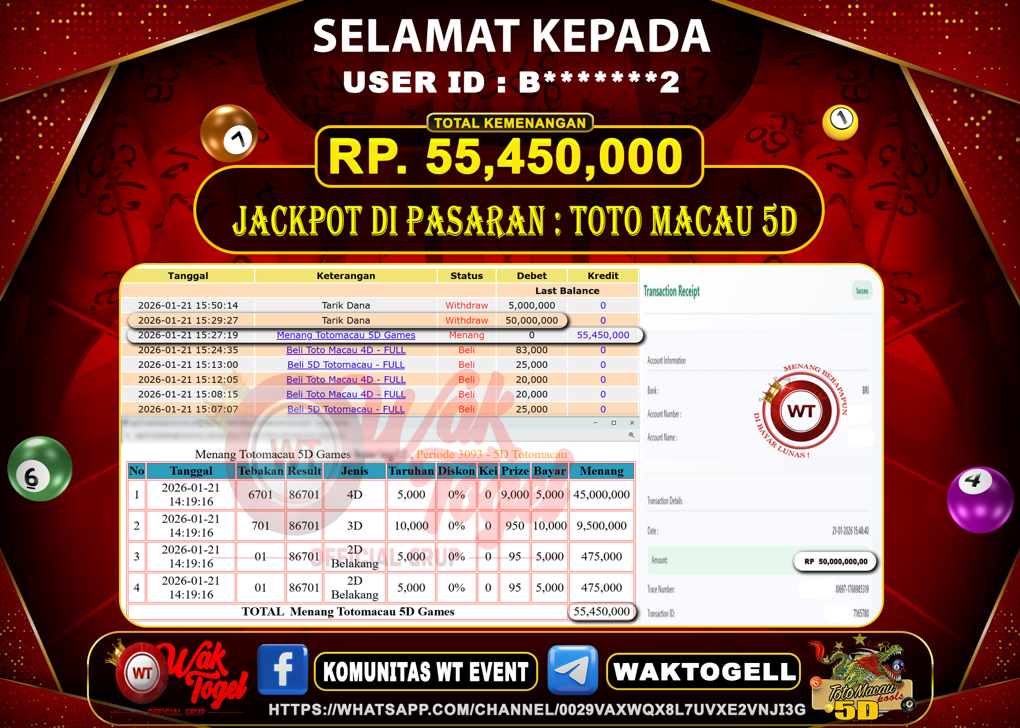 JACKPOT TOGEL WAKTOGEL BUKTI PEMBAYARAN TOTO MACAU 5D WAKTOGEL By JPWT Januari 21, 2026 0 comments 2 min read BUKTI PEMBAYARAN TOTO MACAU 5D WAKTOGEL BUKTI PEMBAYARAN TOTO MACAU 5D WAKTOGEL RP. 55,450,000 – GAME : TOGEL TOTO MACAU 5D POOLS (USER ID : […]