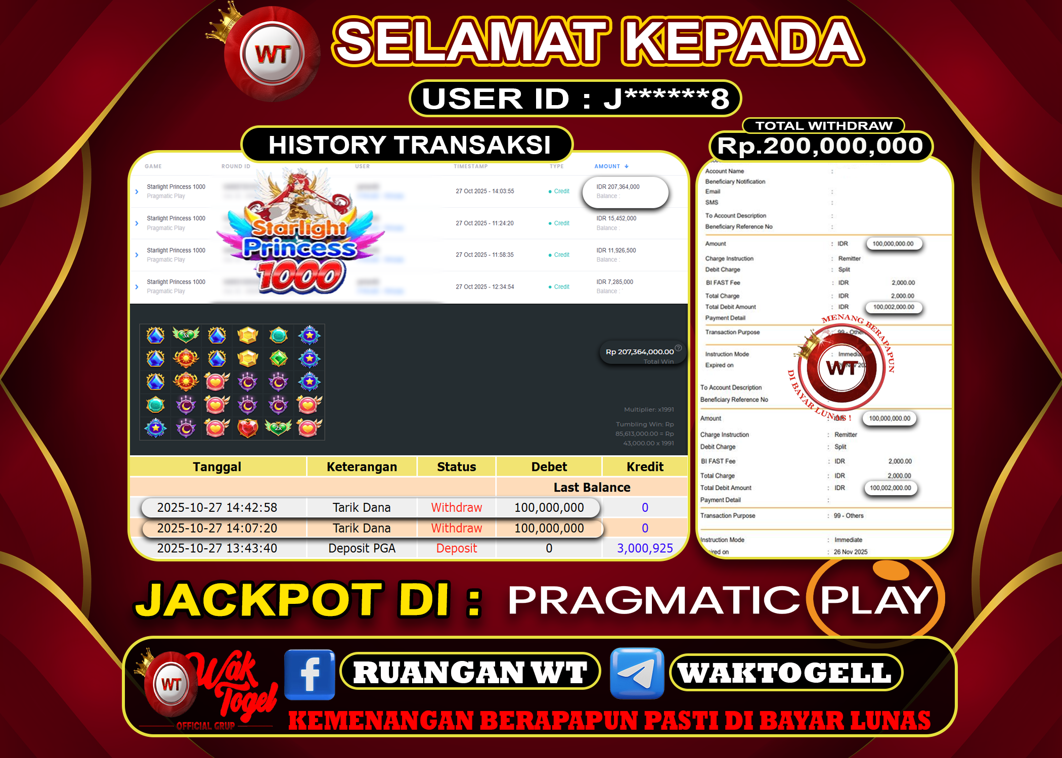 JACKPOT SLOT WAKTOGEL BUKTI PEMBAYARAN SLOT WAKTOGEL By JPWT Oktober 27, 2025 0 comments 2 min read BUKTI PEMBAYARAN SLOT WAKTOGEL BUKTI PEMBAYARAN SLOT WAKTOGEL RP. 200,000,000 – GAME : SLOT STARLIGHT PRINCESS 1000 (USER ID : J******8)TANGGAL|27-10-2025| CASH LUNAS ! Kami […]