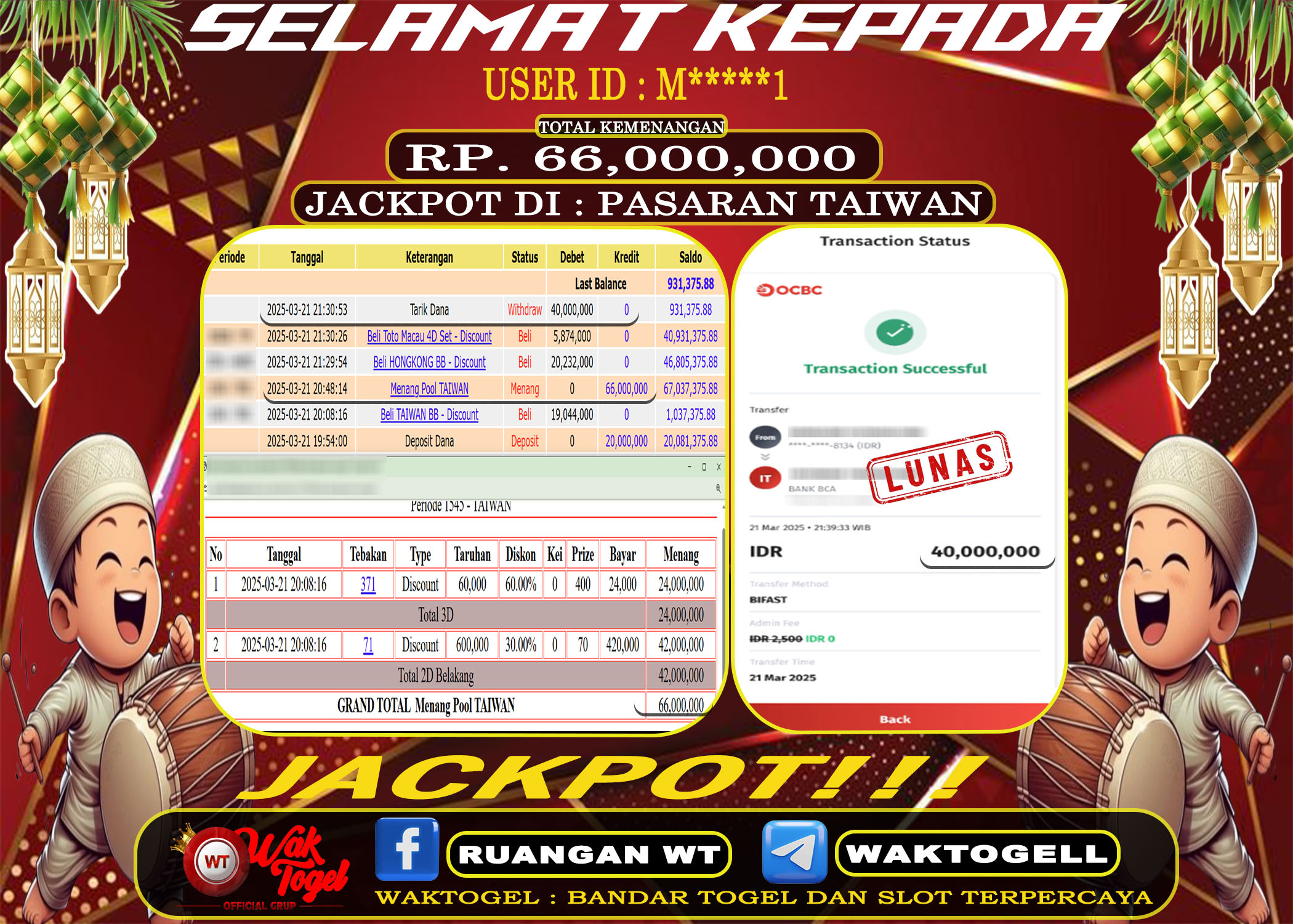 Bukti Pembayaran Jackpot Waktogel Untuk SLOT, TOGEL , LIVECASINO