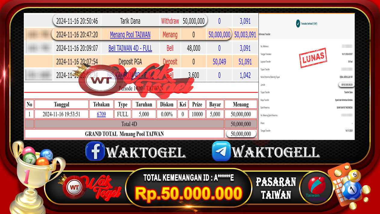 JACKPOT TOGEL WAKTOGEL BUKTI PEMBAYARAN TAIWAN WAKTOGEL By JPWT November 16, 2024 0 comments 2 min read BUKTI PEMBAYARAN TAIWAN WAKTOGEL BUKTI PEMBAYARAN TAIWAN WAKTOGEL RP. 50.000.000 – GAME : TOGEL TAIWAN POOLS (USER ID : A******E)TANGGAL|16-11-2024| CASH LUNAS ! Kami ucapkan […]