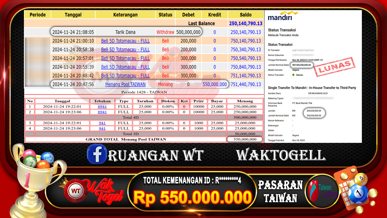 JACKPOT TOGEL WAKTOGEL BUKTI PEMBAYARAN TAIWAN WAKTOGEL By JPWT November 24, 2024 0 comments 2 min read BUKTI PEMBAYARAN TAIWAN WAKTOGEL BUKTI PEMBAYARAN TAIWAN WAKTOGEL RP. 550.000.000 – GAME : TOGEL TAIWAN POOLS (USER ID : R*********4)TANGGAL|24-11-2024| CASH LUNAS ! Kami ucapkan […]