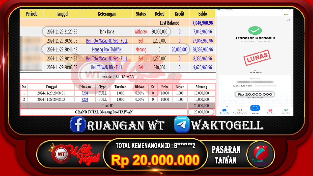JACKPOT TOGEL WAKTOGEL BUKTI PEMBAYARAN TAIWAN WAKTOGEL By JPWT November 29, 2024 0 comments 2 min read BUKTI PEMBAYARAN TAIWAN WAKTOGEL BUKTI PEMBAYARAN TAIWAN WAKTOGEL RP. 20.000.000 – GAME : TOGEL TAIWAN POOLS (USER ID : B*********2)TANGGAL|29-11-2024| CASH LUNAS ! Kami ucapkan […]