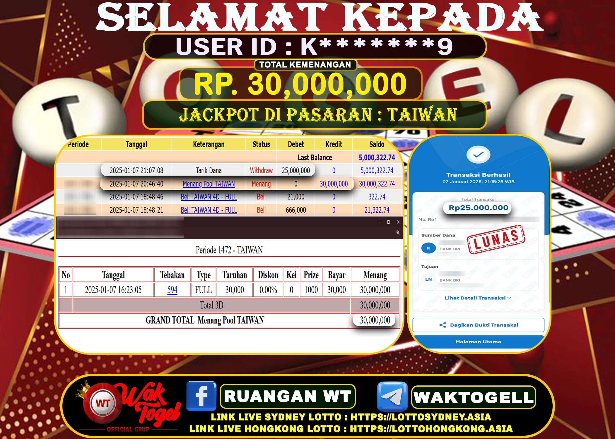 JACKPOT TOGEL WAKTOGEL BUKTI PEMBAYARAN TAIWAN WAKTOGEL By JPWT November 10, 2024 0 comments 2 min read BUKTI PEMBAYARAN TAIWAN WAKTOGEL BUKTI PEMBAYARAN TAIWAN WAKTOGEL RP. 25.00.000 – GAME : TOGEL TAIWAN POOLS (USER ID : B*********2)TANGGAL|10-11-2024| CASH LUNAS ! Kami ucapkan […]