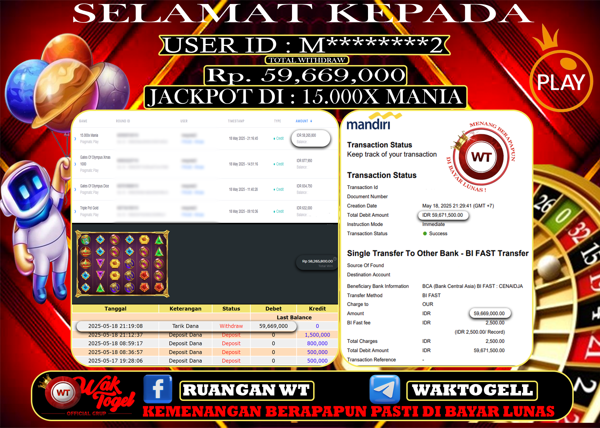JACKPOT SLOT WAKTOGEL BUKTI PEMBAYARAN SLOT WAKTOGEL By JPWT Juni 27, 2025 0 comments 2 min read BUKTI PEMBAYARAN SLOT WAKTOGEL BUKTI PEMBAYARAN SLOT WAKTOGEL RP. 36,000,000 – GAME : SLOT 15.000X MANIA (USER ID : S*****0) TANGGAL |26-06-2025| CASH LUNAS ! […]