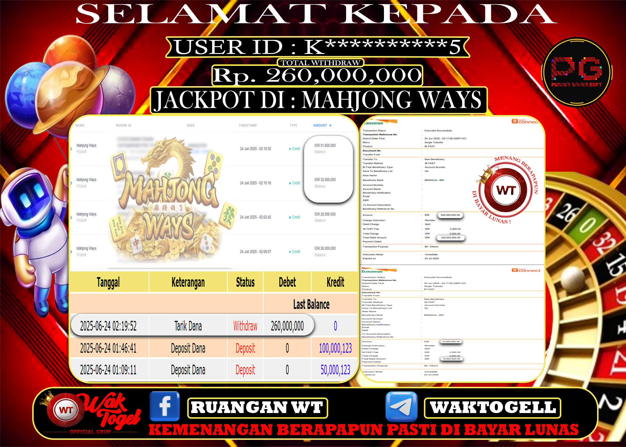 JACKPOT SLOT WAKTOGEL BUKTI PEMBAYARAN SLOT WAKTOGEL By JPWT Juni 24, 2025 0 comments 2 min read BUKTI PEMBAYARAN SLOT WAKTOGEL BUKTI PEMBAYARAN SLOT WAKTOGEL RP. 260.000.000 – GAME : SLOT MAHJONG WAYS (USER ID : K**********5) TANGGAL |24-06-2025| CASH LUNAS ! […]