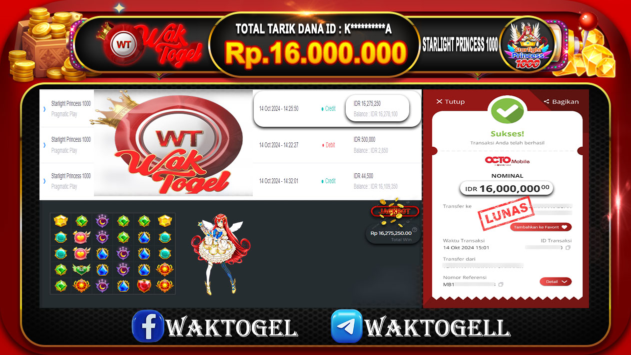 JACKPOT SLOT WAKTOGEL BUKTI PEMBAYARAN SLOT WAKTOGEL By JPWT Oktober 14, 2024 0 comments 2 min read BUKTI PEMBAYARAN SLOT WAKTOGEL BUKTI PEMBAYARAN SLOT WAKTOGEL RP. 16.000.000 – GAME : SLOT STARLIGHT PRINCESS 1000 (USER ID : K**********A) TANGGAL |14-10-2024| CASH LUNAS […]
