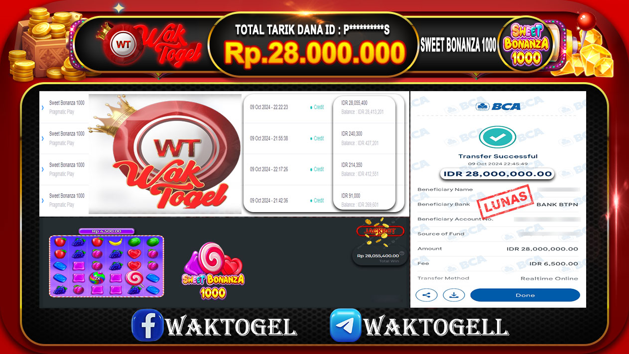 JACKPOT SLOT WAKTOGEL BUKTI PEMBAYARAN SLOT WAKTOGEL By JPWT Oktober 3, 2024 0 comments 2 min read BUKTI PEMBAYARAN SLOT WAKTOGEL BUKTI PEMBAYARAN SLOT WAKTOGEL RP. 45.000.000 – GAME : SLOT SWEET BONANZA 1000 (USER ID :G*****2) TANGGAL |03-10-2024| CASH LUNAS ! […]
