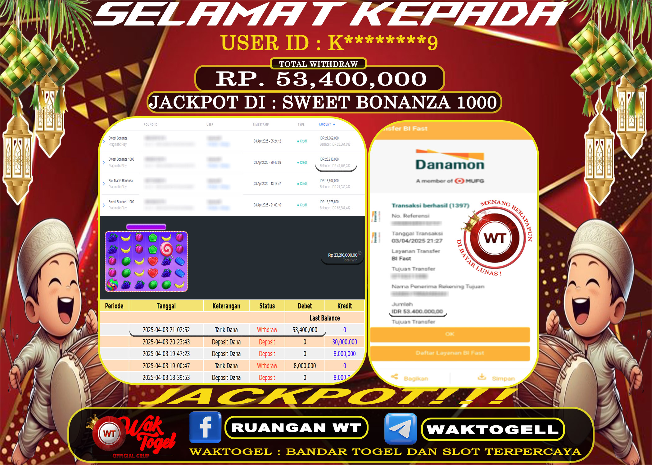 JACKPOT SLOT WAKTOGEL BUKTI PEMBAYARAN SLOT WAKTOGEL By JPWT April 4, 2025 0 comments 2 min read BUKTI PEMBAYARAN SLOT WAKTOGEL BUKTI PEMBAYARAN SLOT WAKTOGEL RP. 53,400,000 – GAME : SLOT SWEET BONANZA 1000 (USER ID : K********9) TANGGAL |03-04-2025| CASH LUNAS […]