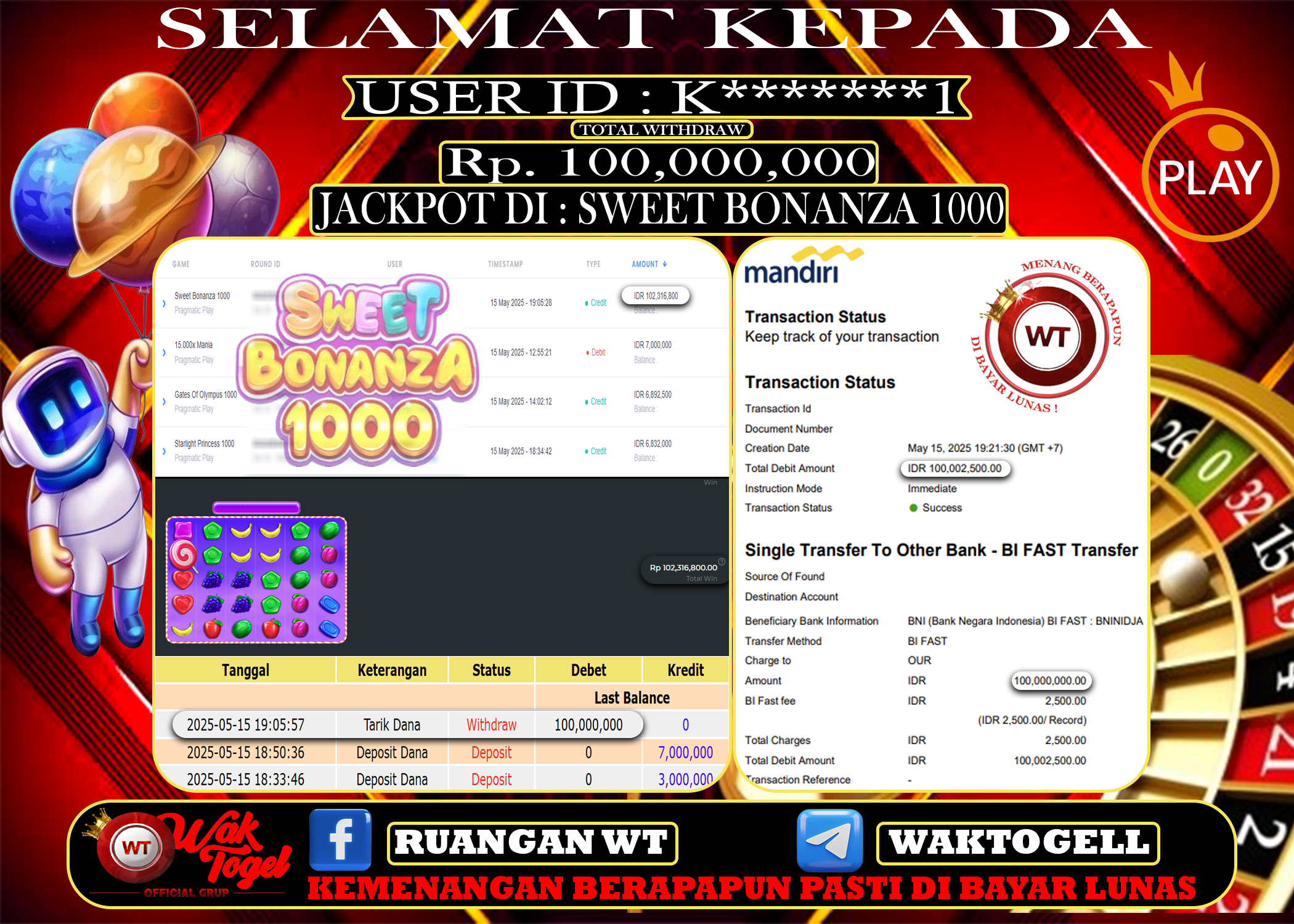 JACKPOT SLOT WAKTOGEL BUKTI PEMBAYARAN SLOT WAKTOGEL By JPWT Mei 15, 2025 0 comments 2 min read BUKTI PEMBAYARAN SLOT WAKTOGEL BUKTI PEMBAYARAN SLOT WAKTOGEL RP. 100,000,000 – GAME : SLOT SWEET BONANZA 1000 (USER ID : K*******1) TANGGAL |15-05-2025| CASH LUNAS […]