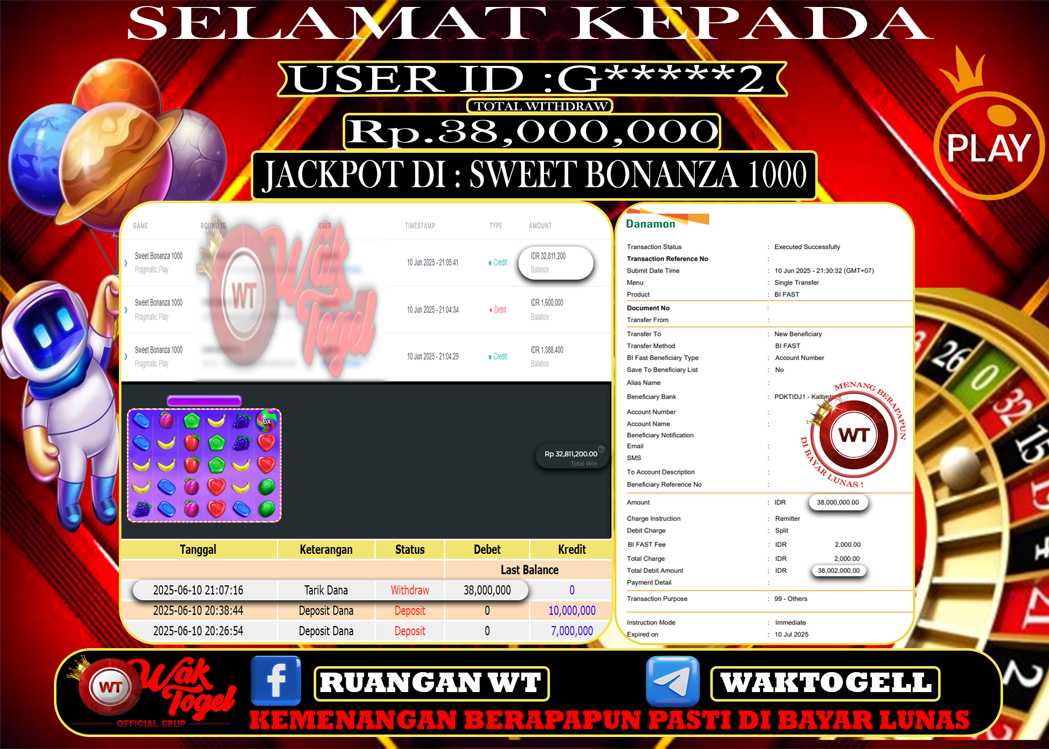 JACKPOT SLOT WAKTOGEL BUKTI PEMBAYARAN SLOT WAKTOGEL By JPWT Juni 10, 2025 0 comments 2 min read BUKTI PEMBAYARAN SLOT WAKTOGEL BUKTI PEMBAYARAN SLOT WAKTOGEL RP. 38,000,000 – GAME : SLOT SWEET BONANZA 1000 (USER ID : G*****2) TANGGAL |10-06-2025| CASH LUNAS […]