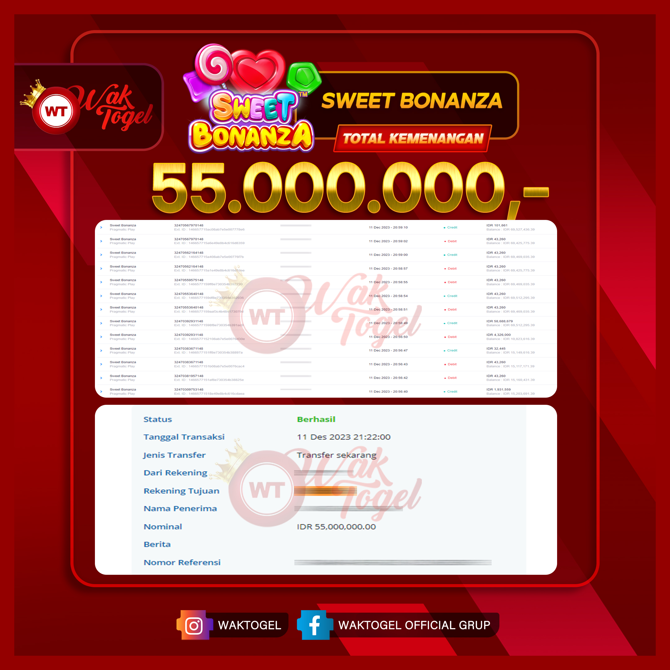 JACKPOT SLOT WAKTOGEL BUKTI PEMBAYARAN SLOT WAKTOGEL By JPWT Desember 12, 2023 0 comments 2 min read BUKTI PEMBAYARAN SLOT WAKTOGEL BUKTI PEMBAYARAN SLOT WAKTOGEL RP. 55.000.000 – GAME : SLOT SWEET BONANZA TANGGAL (USER ID : K******1) |11-12-2023| CASH LUNAS ! […]