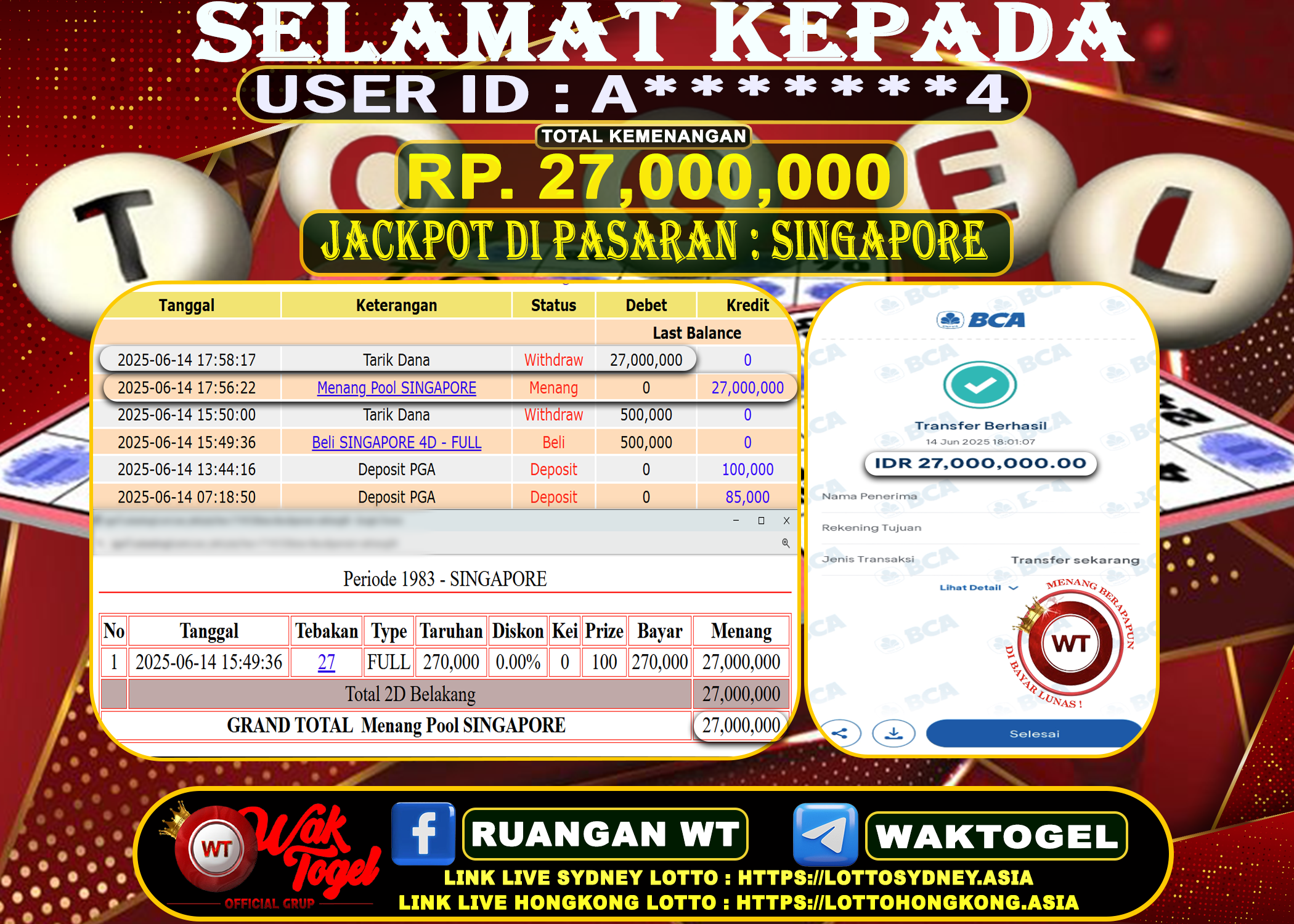 JACKPOT TOGEL WAKTOGEL BUKTI PEMBAYARAN SINGAPORE WAKTOGEL By JPWT Juni 14, 2025 0 comments 2 min read BUKTI PEMBAYARAN SINGAPORE WAKTOGEL BUKTI PEMBAYARAN SINGAPORE WAKTOGEL RP. 27,000,000 GAME : TOGEL SINGAPORE POOLS (USER ID : A*******4) TANGGAL |14-06-2025| CASH LUNAS ! Kami […]
