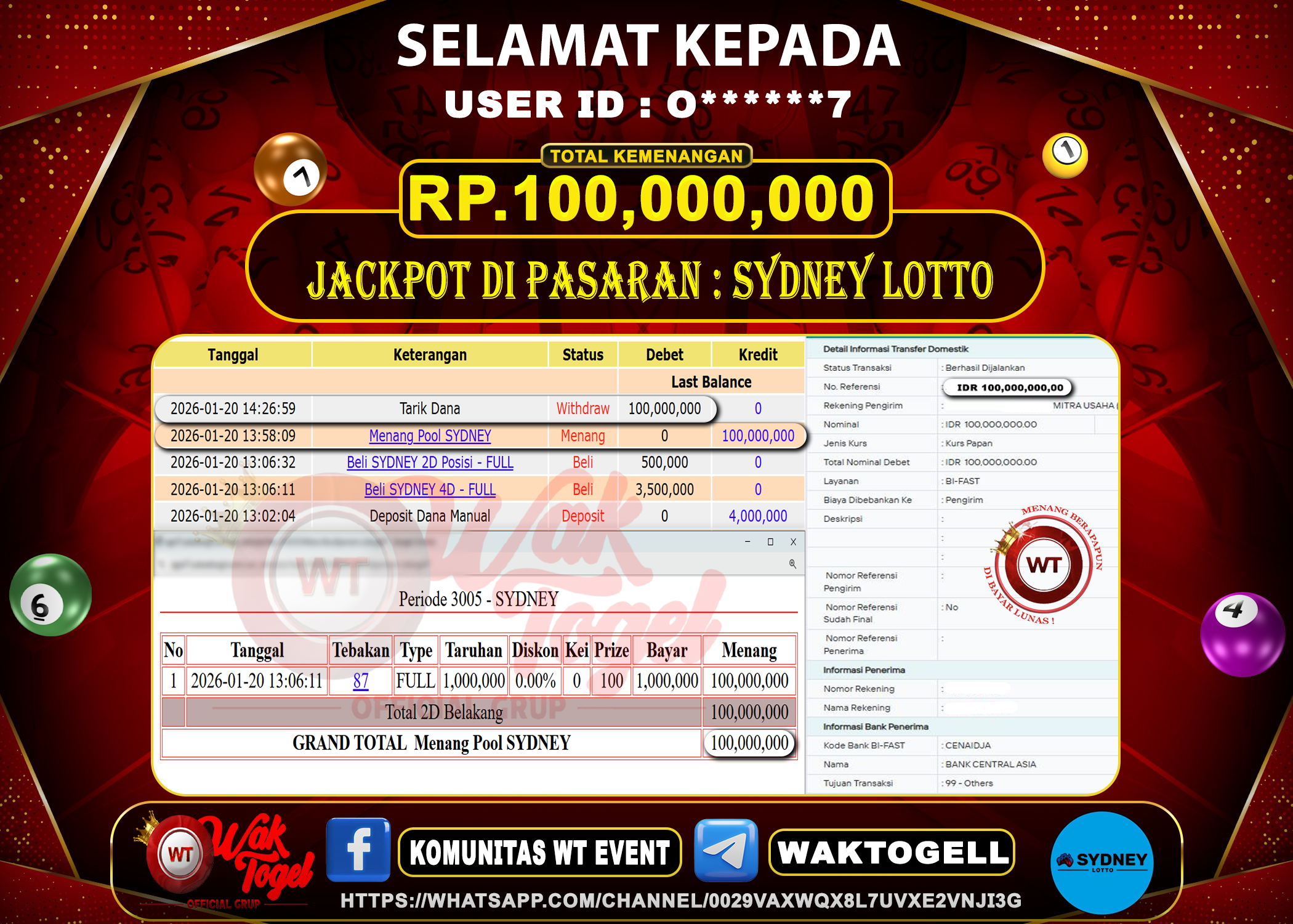 BUKTI PEMBAYARAN SYDNEY WAKTOGEL BUKTI PEMBAYARAN SYDNEY LOTTO WAKTOGEL RP. 100.000.000 – GAME : TOGEL SYDNEY LOTTO (USER ID : 0******7) TANGGAL |20-01-2026| CASH LUNAS […]