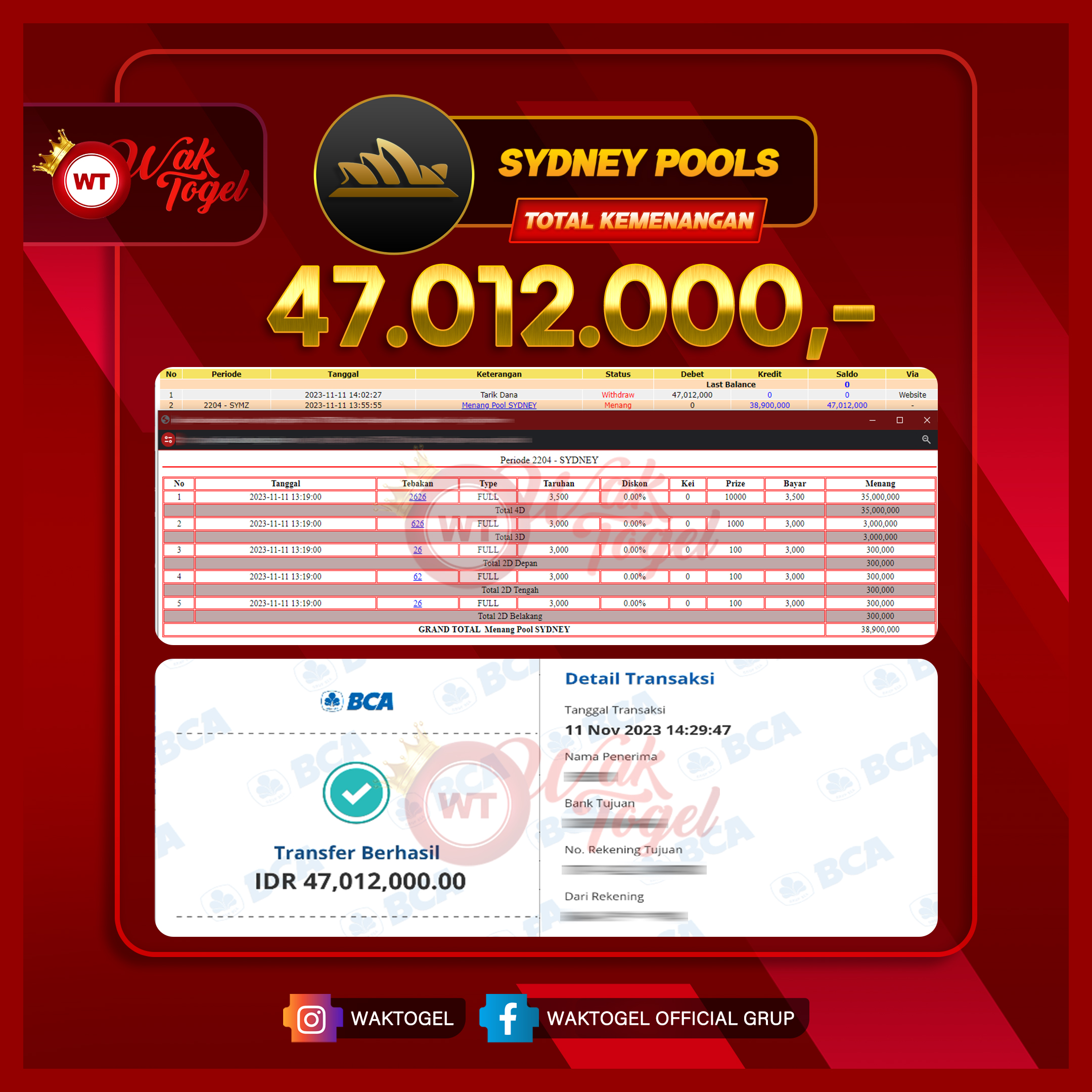 BUKTI PEMBAYARAN SYDNEY WAKTOGEL BUKTI PEMBAYARAN SYDNEY WAKTOGEL RP. 47.012.000 – GAME : TOGEL SYDNEY POOLS TANGGAL (USER ID : P*********O) |11-11-2023| CASH LUNAS ! […]