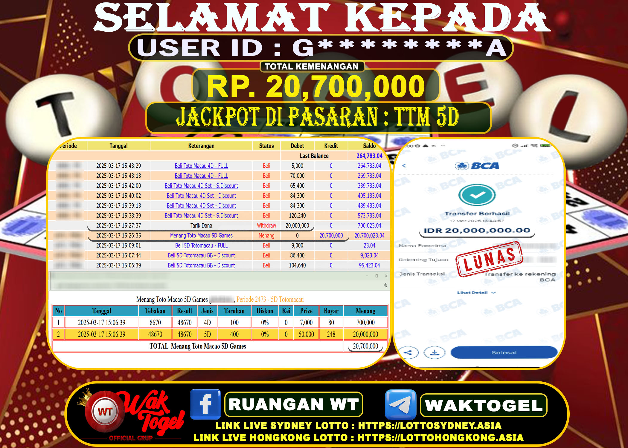 Bukti Pembayaran Jackpot Waktogel Untuk SLOT, TOGEL , LIVECASINO